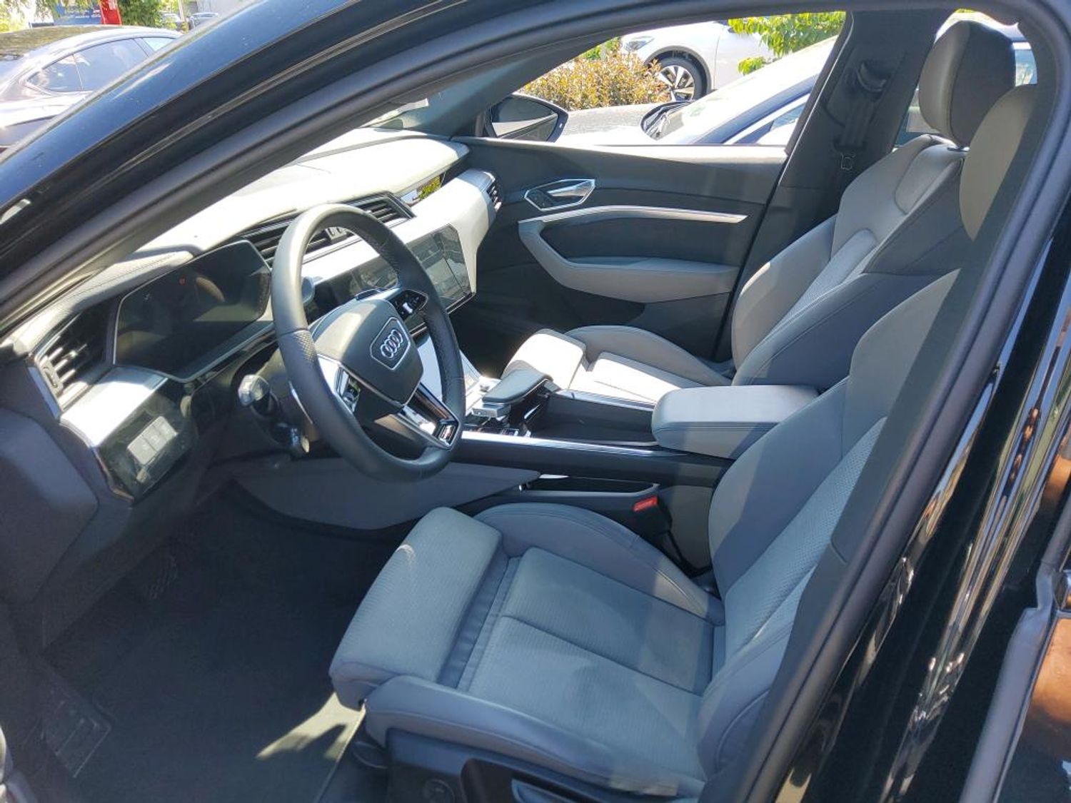 Daarnaast is de e-tron uitgerust met een volledig panoramisch schuif-/kanteldak, elektrisch verstelbare stuurkolom, meerdere USB- en laadpunten, digitale radio (DAB+), velours vloermatten en uitgebreide opslag- en laadvoorzieningen.